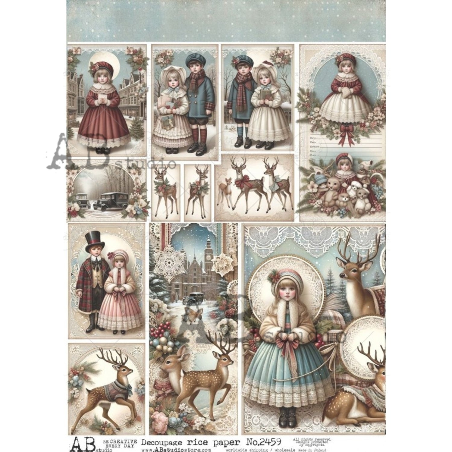 AB Studios Rice Paper Mini Scenes Christmas & reindeer A4 2459