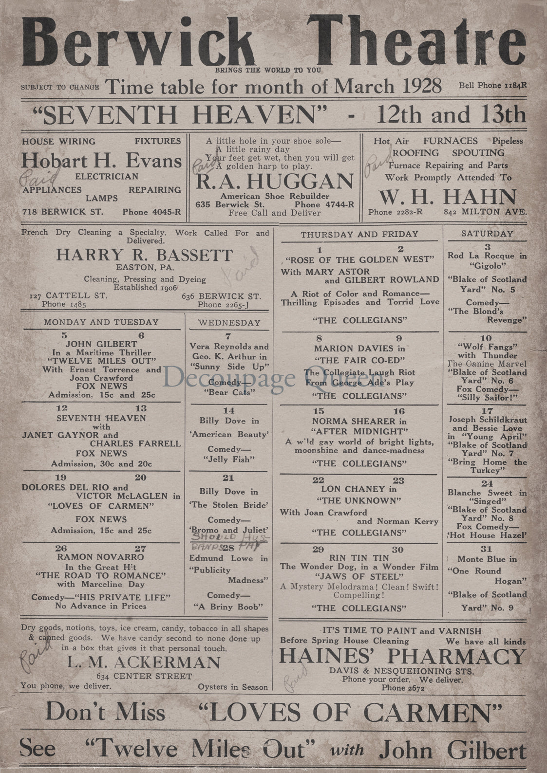 Decoupage Queen BERWICK THEATER Rice Paper A3 (11.7 X 16.5 INCHES) 0579