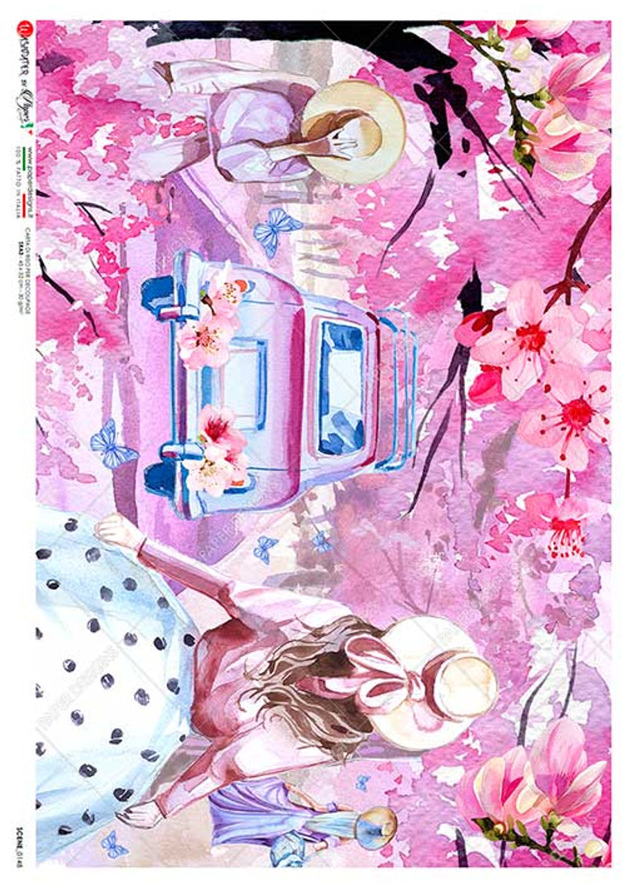 Paper Designs SCENE 0148 SPRING OUTING WATERCOLOR LADIES WITH HATSRICE PAPER A4 (8.3 X 11.7 INCHES)